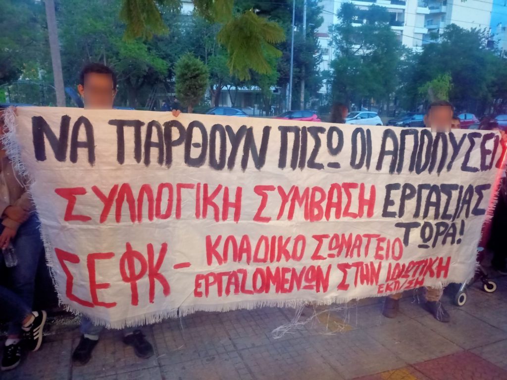 Το απόγευμα πραγματοποιήθηκε κινητοποίηση έξω από το φροντιστήριο Αλιμπινίσης μαζί με το σ. Βύρων με μαζική συμμετοχή συναδέλφων, συναδελφισσών και αλληλέγγυου κόσμου της γειτονιάς.