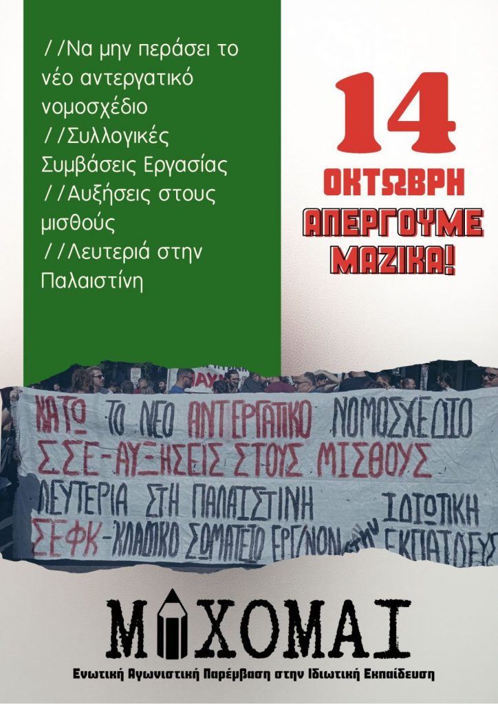 14 Οκτώβρη απεργούμε μαζικά!
