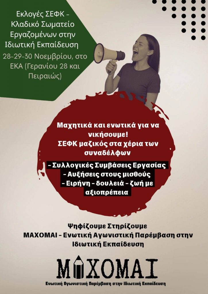 Στηρίζουμε – ψηφίζουμε ΜΑΧΟΜΑΙ – Ενωτική Αγωνιστική Παρέμβαση στην Ιδιωτική Εκπαίδευση!