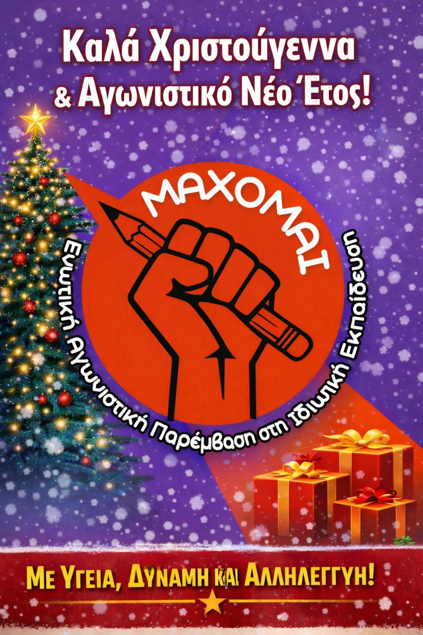 Το ΜΑΧΟΜΑΙ – Ενωτική Αγωνιστική Παρέμβαση στην Ιδιωτική Εκπαίδευση ευχόμαστε σε όλους τους συναδέλφους και τις συναδέλφισσες, τους μαθητές και τις μαθήτριές μας, τις οικογένειές τους και όλους τους/τις εργαζόμενους/ες